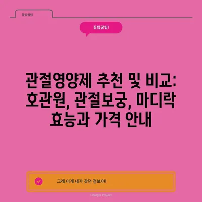 관절영양제 추천 및 비교: 호관원, 관절보궁, 마디락 효능과 가격 안내