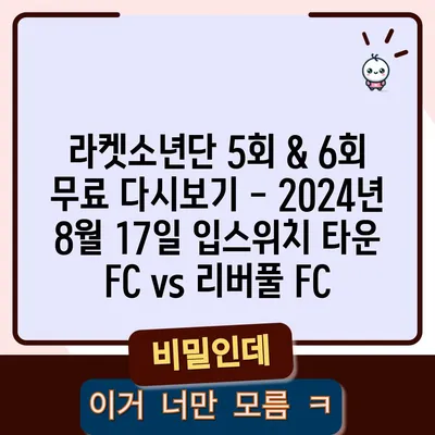 라켓소년단 5회 & 6회 무료 다시보기 – 2024년 8월 17일 입스위치 타운 FC vs 리버풀 FC