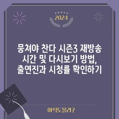 뭉쳐야 찬다 시즌3의 재방송 및 방송시간, 다시보기 정보, 출연진, 공식영상, 시청률과 회차정보를 상세히 알아보세요.