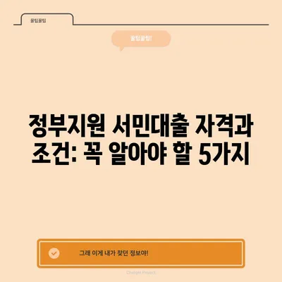 정부지원 서민대출 자격과 조건: 꼭 알아야 할 5가지